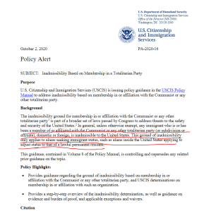 Breaking News超级重磅:美国禁止共产党入境 今天移民局官网正式公告:共产党禁止入境的政策说明 超级重磅: 2020年10月2日开始起,美国停止共产党或隶属组织成员的移民办理! 共产党99.999%都是恐怖份子! 美国要杜绝共产党的垃圾们移民了! 共享此文章: Share on X (Opens in new window) X Share on Facebook (Opens in new window) Facebook Like Loading... Related