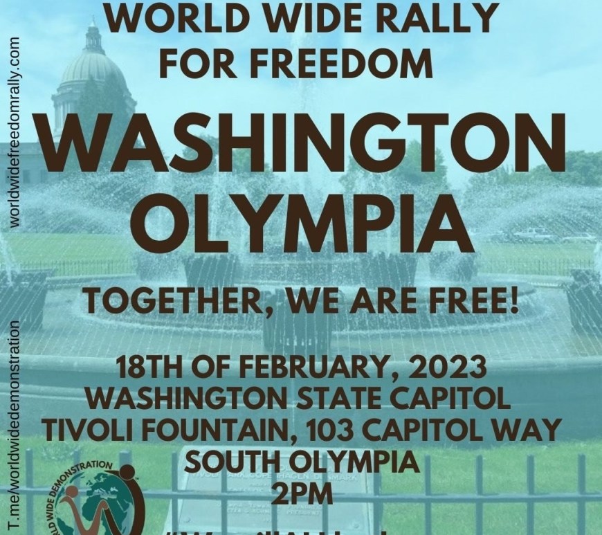 OLYMPIA WASHINGTON’S Worldwide FREEDOM RALLY – Feb 18th @ 2pm Together, we are FREE! Address: Olympia Capital Tivoly Fountain, 103 Capitol Way South. #WewillALLbethere Continue reading OLYMPIA WASHINGTON’S Worldwide FREEDOM RALLY